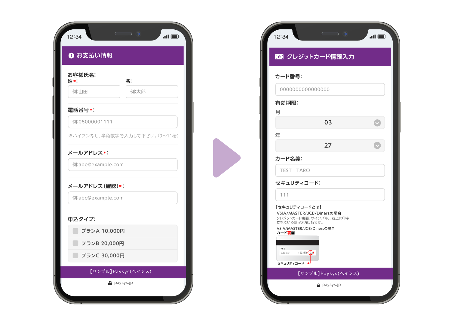 お客様はフォームに必要項目を入力し、支払方法を選択してお支払いするだけです。